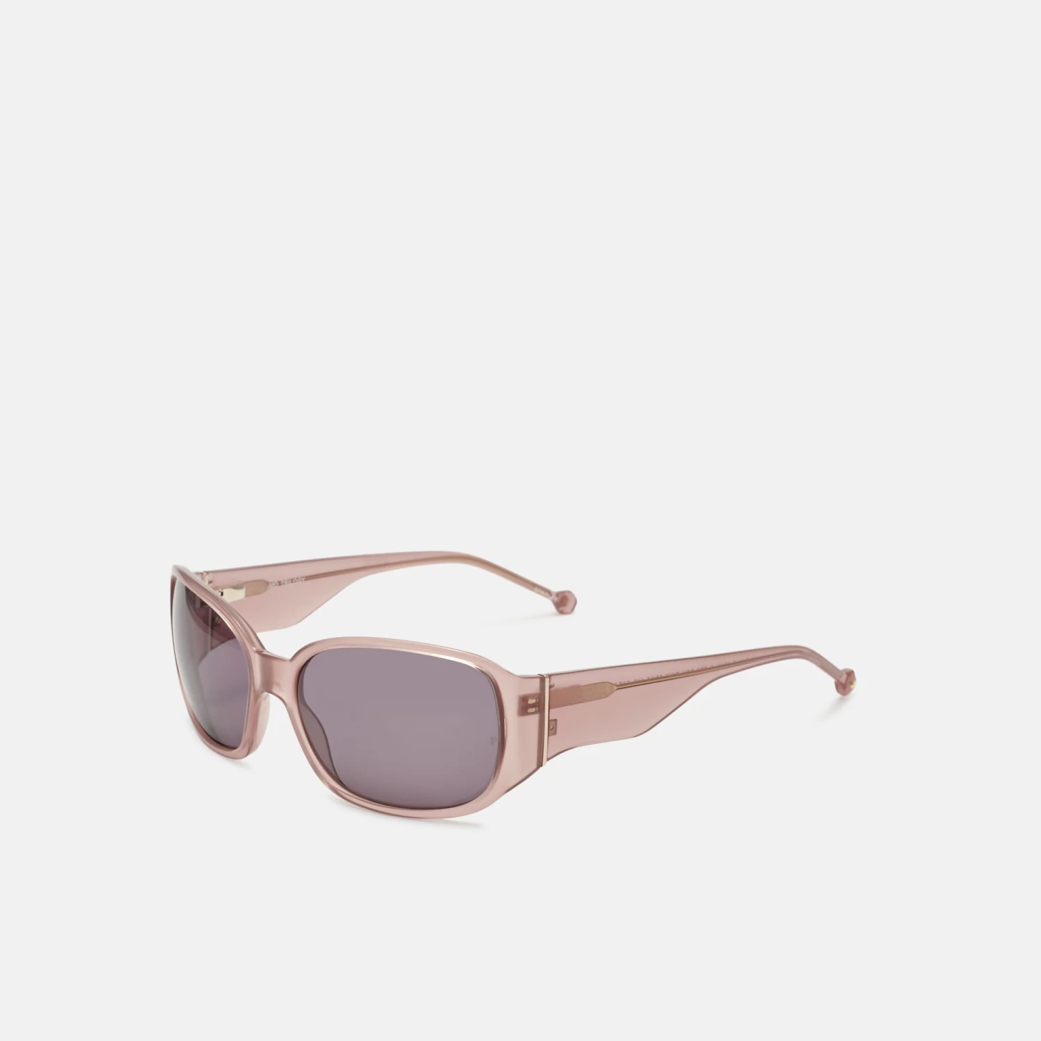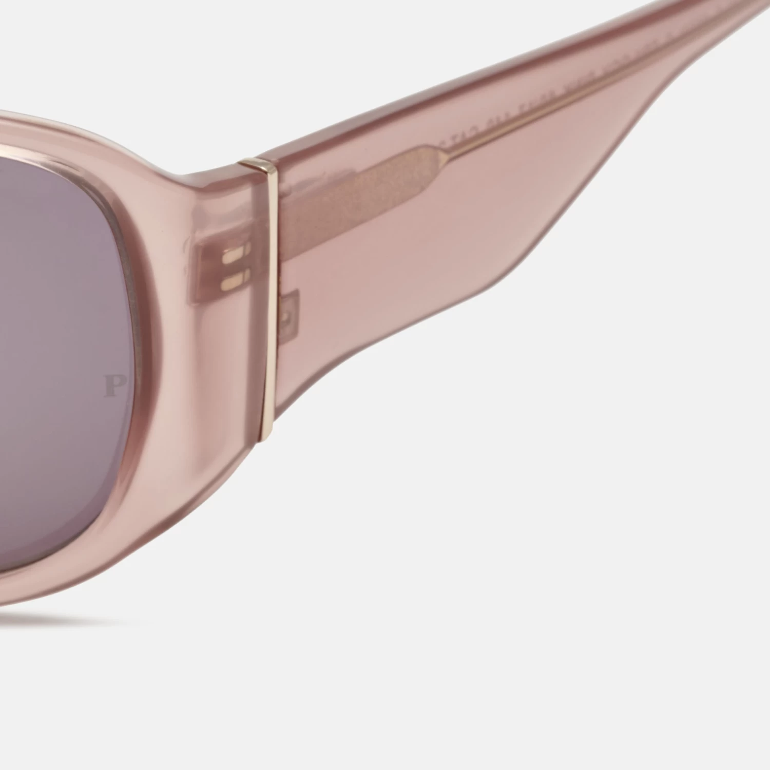 Gafas de sol para mujer, con forma rectangular , de pasta en color rosa. El terminal cuenta con una pieza metálica en relieve y brillo, que aporta un toque más sofisticado. Sus lentes rosas de alta calidad, son polarizadas para una mayor protección y confort.