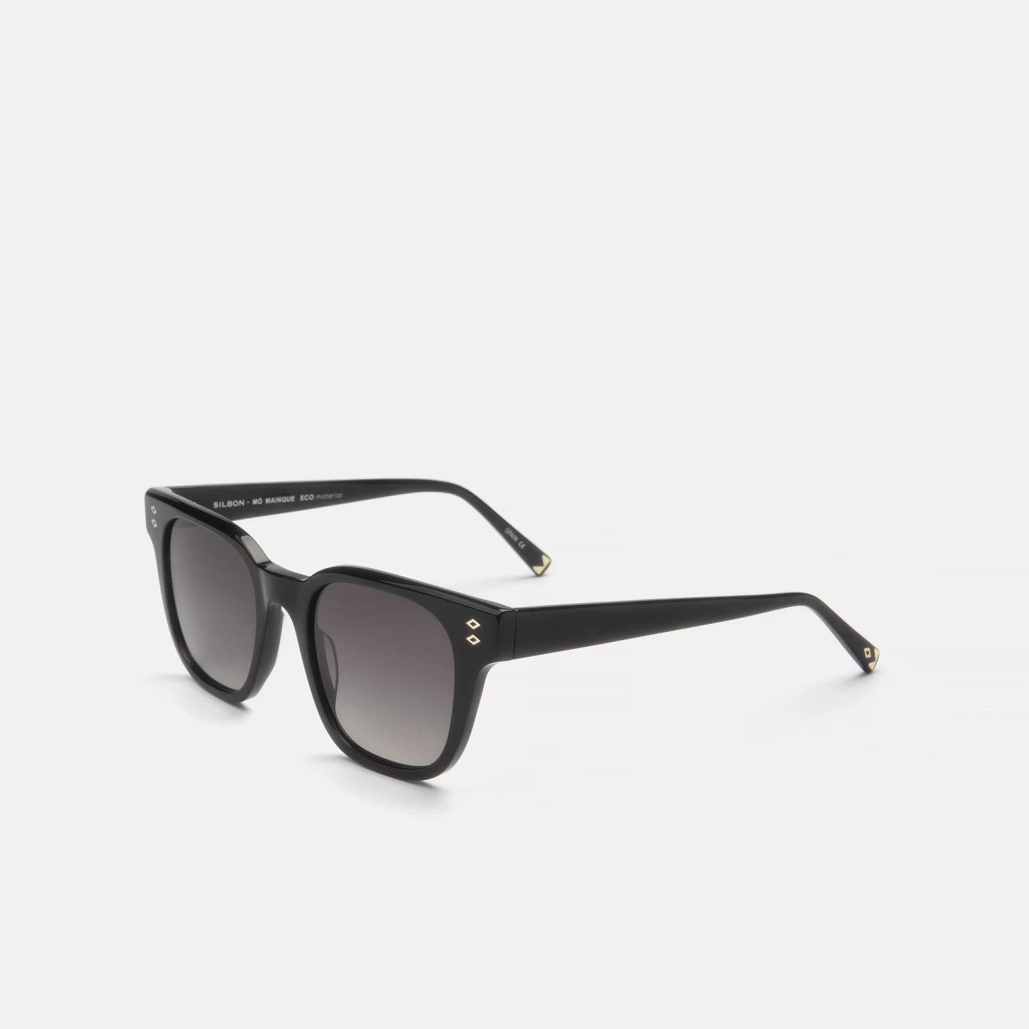 El modelo Mó MAINQUE, de estilo atemporal y forma cuadrada es un modelo perfecto para cualquier momento en acetato color negro y con detalles metálicos en dorado aportan elegancia y sofisticación. La lente es de color gris degradado con tratamiento padado con tratamiento polarizado para proteger tu visión. La montura viene acompañada con caja, estuche y gamuza de diseño exclusivo de la colaboración de MÓ x SILBON.