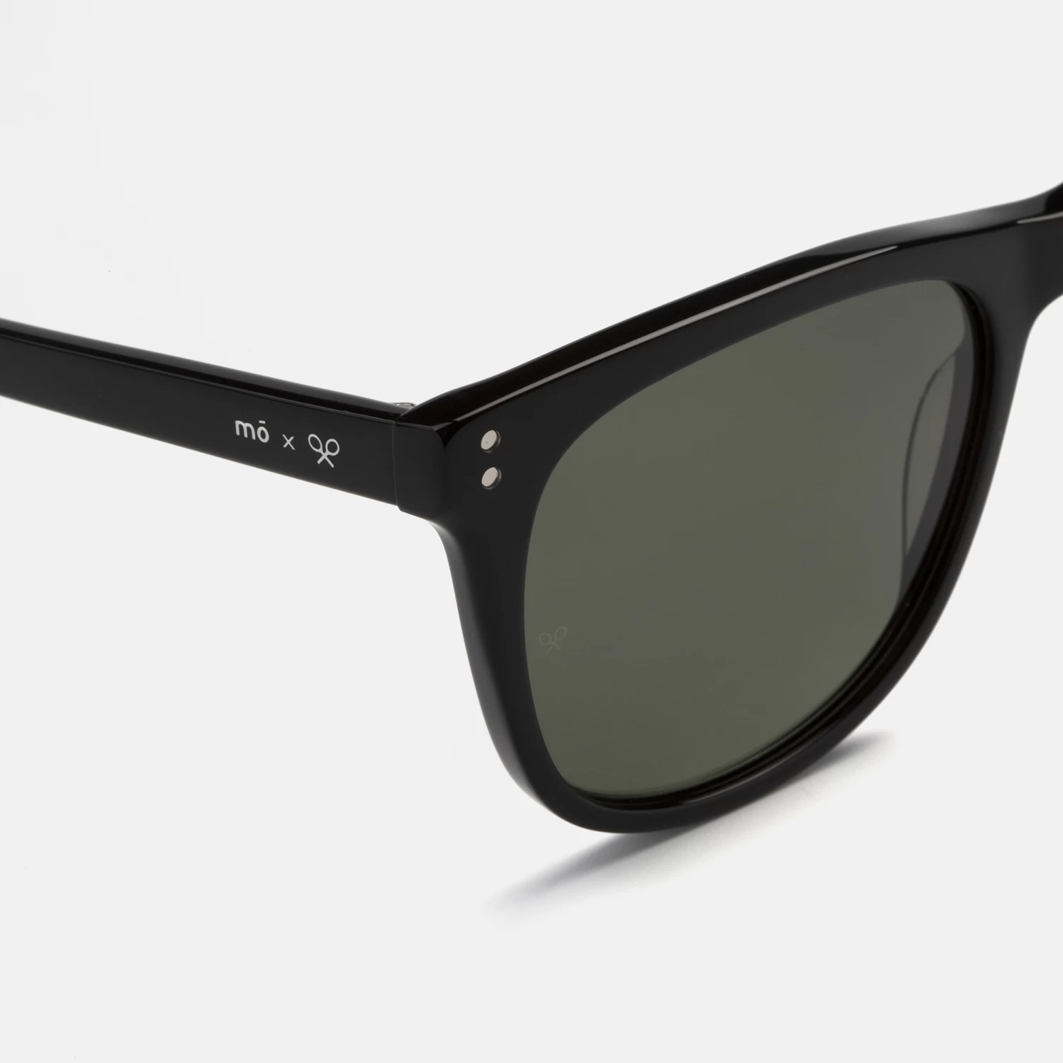 El modelo MÓ TANOK, recibe su nombre del tipo de nudo de corbata. De estilo atemporal, forma parte del fondo de armario de cualquier amante de las gafas. Su forma retro en acetato color negro y detalles metálicos en el frente aporta un toque diferente. La lente es de color verde sólido con tratamiento polarizado para proteger tu visión. La montura viene acompañada con caja, estuche y gamuza de diseño exclusivo de la colaboración de MÓ x SILBON.