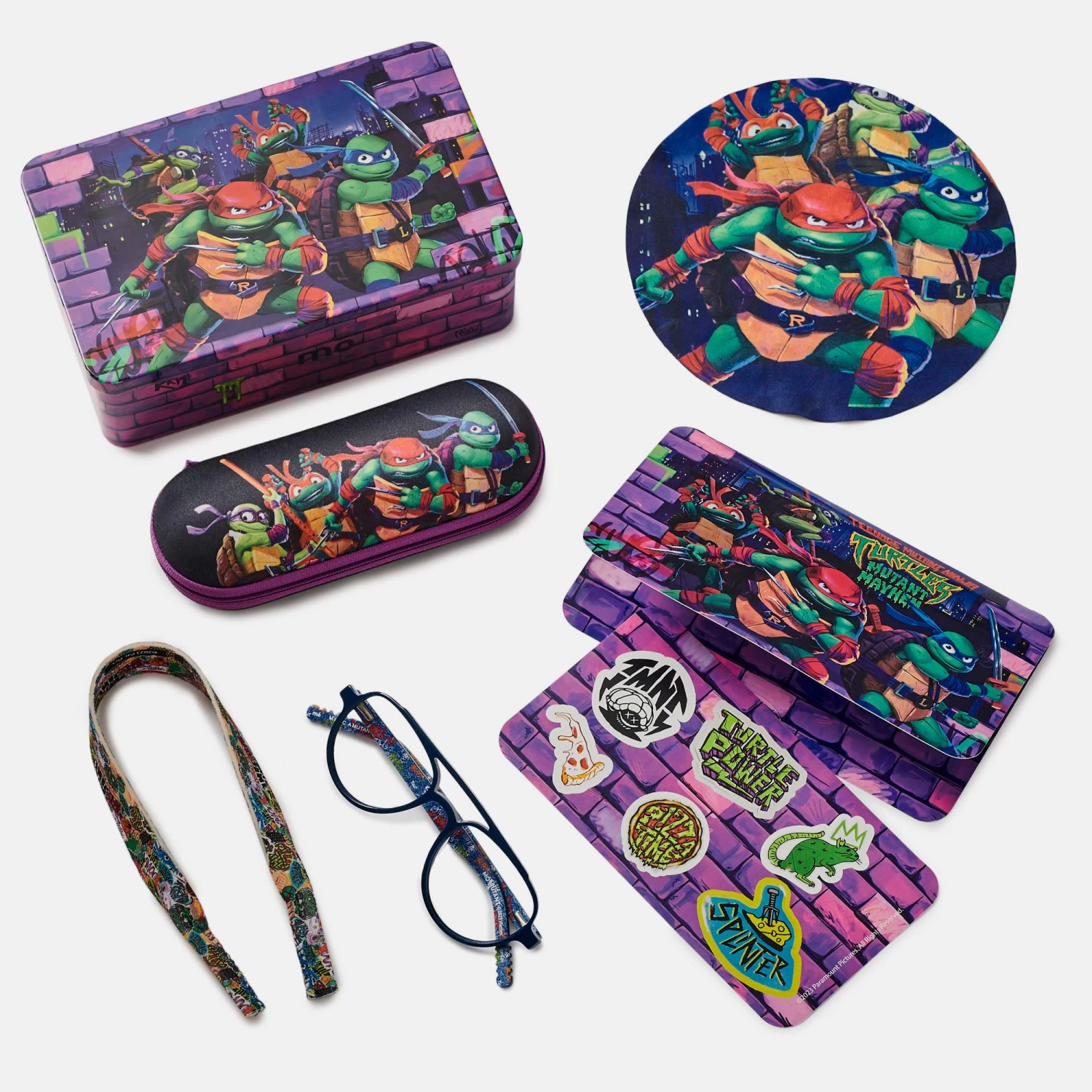 ¡Aventura y Estilo en las Gafas MÓ x TORTUGAS NINJA para Niños! Diseño aviador en acetato azul con estampado graffiti en el interior. Sus varillas especiales ofrecen detalles gráficos de las tortugas ninja. ¡La moda más cool para los más pequeños!