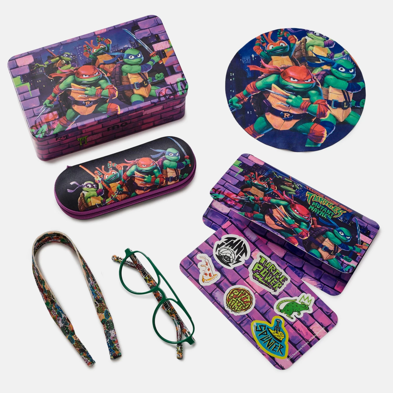 ¡Aventura y Estilo en las Gafas MÓ x TORTUGAS NINJA para Niños! Diseño aviador en acetato verde con estampado graffiti en el interior. Sus varillas especiales ofrecen detalles gráficos de las tortugas ninja. ¡La moda más cool para los más pequeños!